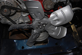 On Monday, Dad spent over three hours in the hot garage machining an aluminum that keeps the fan away from the radiator, etc. safely apart from each other, while still fitting in the engine compartment. He ordered a battery box and worked to grit blast and straighten the part he has. When it arrives, he will have to weld the parts together. He has a friend that came by on Friday to help him install the tunnel ram though that friend discouraged him from doing it till the engine was totally rebuilt...so Dad decided to do it himself. This friend used to work on race cars and heavy trucks at Sanderson Ford, so everything has to be ready for heavy duty and high performance in his mind. We have neither the time nor the money for such. He worked and worked and got his shifter all installed.