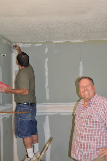 He hurt his back so the rest of the week was on hold. Next week, he will caulk the wall bases, sand the drywall tape, paint on a sealer called Red Guard, and hopefully have Wade Wallin come over to create the shower pan with cement.