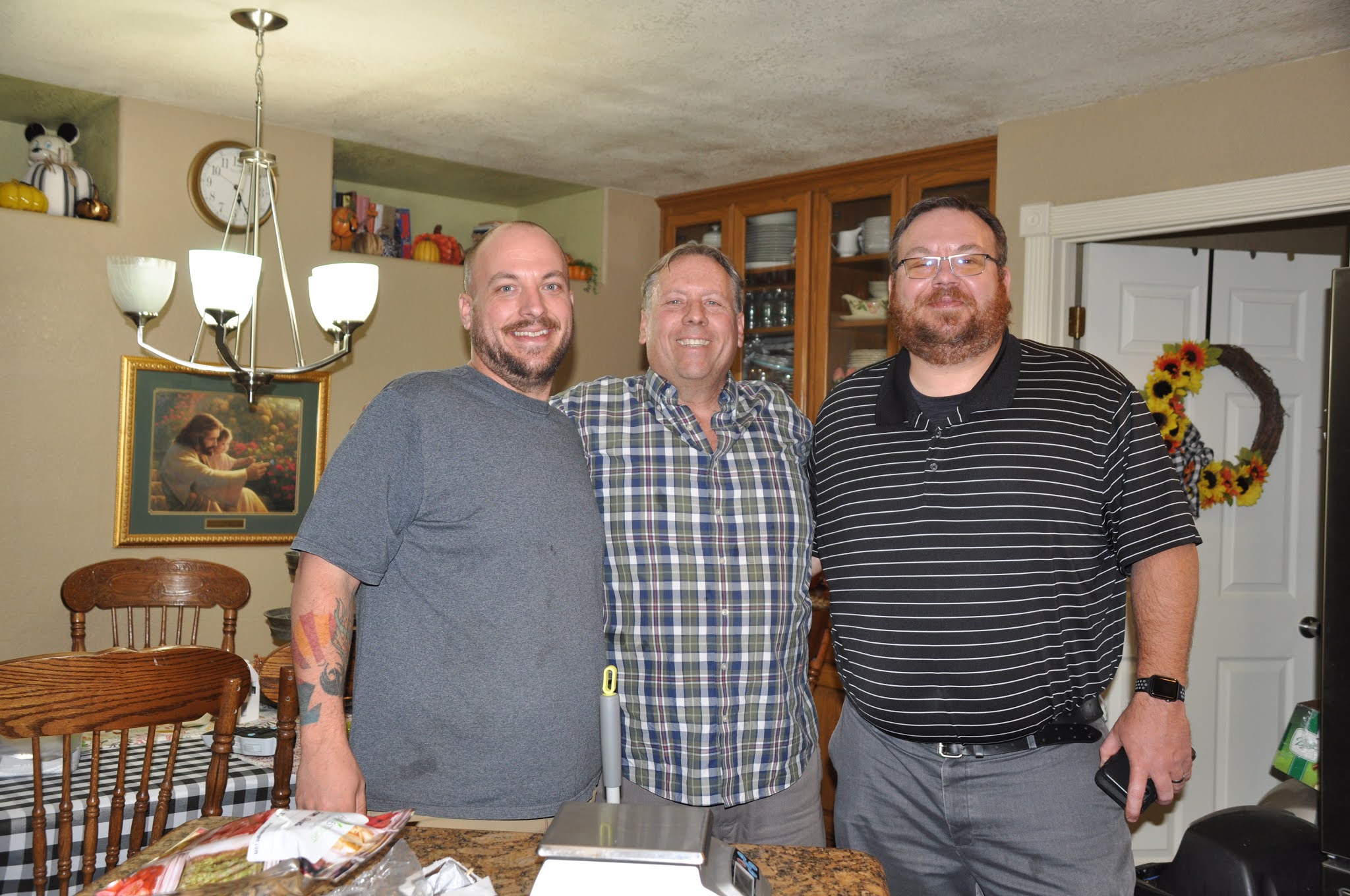 Ethan traveled to Phoenix for work on Thursday and we got to have him to dinner on Thursday. He got off work Saturday and had a little dinner in a pumpkin without the pumpkin, and walked around with us Trick or Treating with Nathan and family. Morgan stopped by while he was here Saturday and we actually got a pic or two...